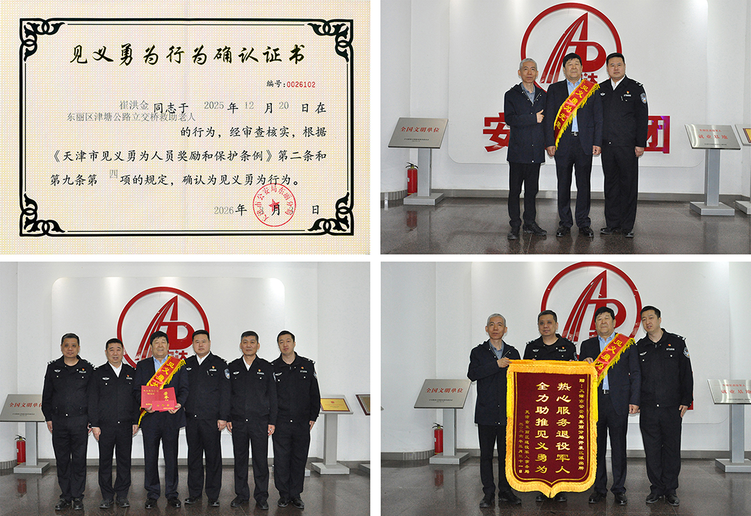 01日2026-04近日,東麗區(qū)見義勇為協(xié)會(huì)會(huì)長一行來到安達(dá)集團(tuán),為全國最美擁軍人物、安達(dá)集團(tuán)黨委書記、董事長崔洪金頒發(fā)見義勇為確認(rèn)證書和榮譽(yù)證書,表彰其見義勇為的先進(jìn)事跡,傳遞正能量。東麗區(qū)雙擁辦主任、退役軍人事務(wù)局局長出席活動(dòng),并為此次見義勇為申報(bào)單位天津市公安局東麗分局開發(fā)區(qū)派出所贈(zèng)送錦旗,致謝其嚴(yán)謹(jǐn)高...[查看詳情]