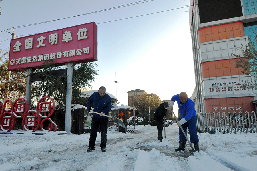 09日2021-1111月7日,天津市迎來今冬首場強降雪。據天津市氣象臺發布信息,降雪量已達暴雪級別。降雪過后,集團各廠區道路都被厚厚的積雪所覆蓋,車輛行駛緩慢,行人步履蹣跚,厚厚的積雪給行人和過往車輛造成極大的不便和安全隱患。為保障廣大職工的出行安全,11月8日一大早,各單位員工在相關領導帶領下,手拿鐵鍬、...[查看詳情]