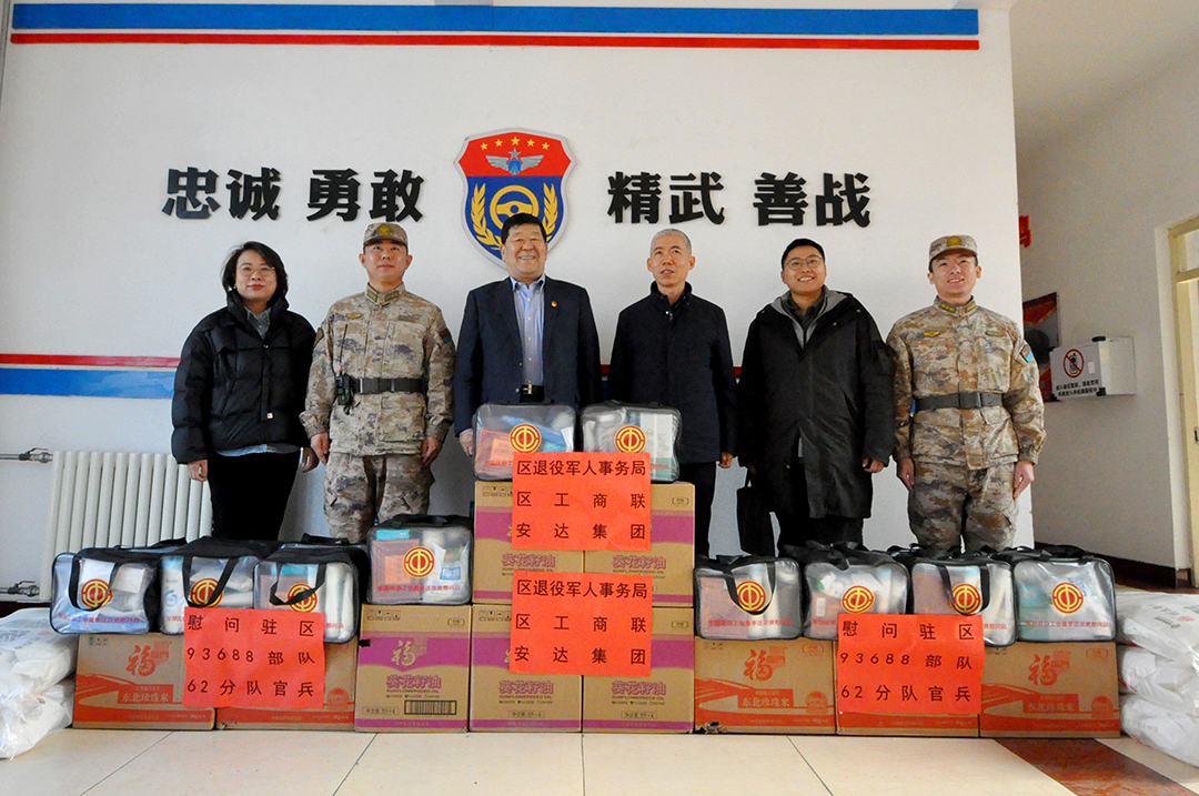 24日2025-01新春佳節來臨之際,處處洋溢著喜慶氛圍。為表達對駐區部隊的崇高敬意和新春祝福,近日,全國最美擁軍人物、安達集團黨委書記、董事長崔洪金分別前往駐區93688部隊52分隊和62分隊開展慰問活動,為部隊官兵送去米面糧油等生活必需品,東麗區雙擁辦主任、退役軍人事務局局長曹硯海、區工商聯相關領導一同...[查看詳情]