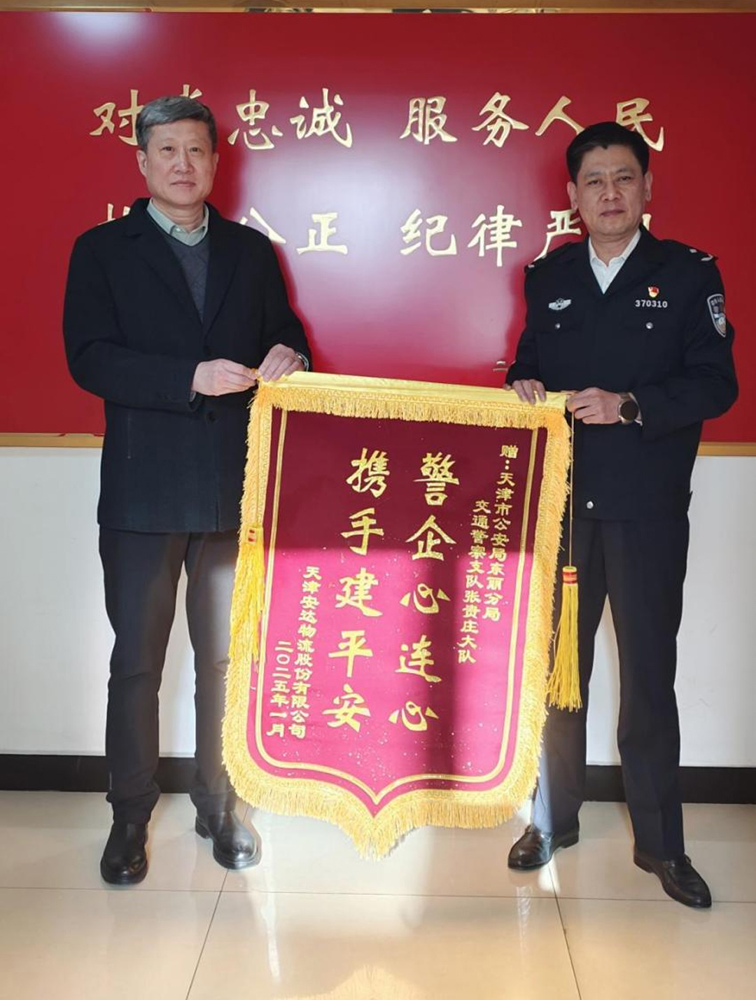 20日2025-01近日,天津安達物流股份有限公司總經理鄭玉強攜副總經理施鵬到訪天津市公安局東麗分局交通警察支隊張貴莊大隊,與大隊長郭劍城進行了一場親切且富有成效的交流。 交流過程中,鄭玉強首先向郭劍城大隊長全面介紹了天津安達物流股份有限公司各業務板塊的發展現狀,展示了安達物流在行業內的穩健發展態勢,特別闡...[查看詳情]
