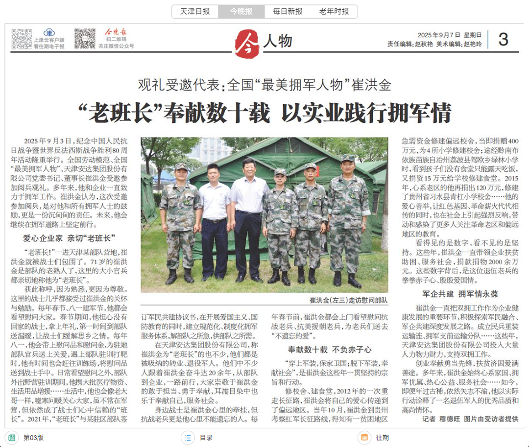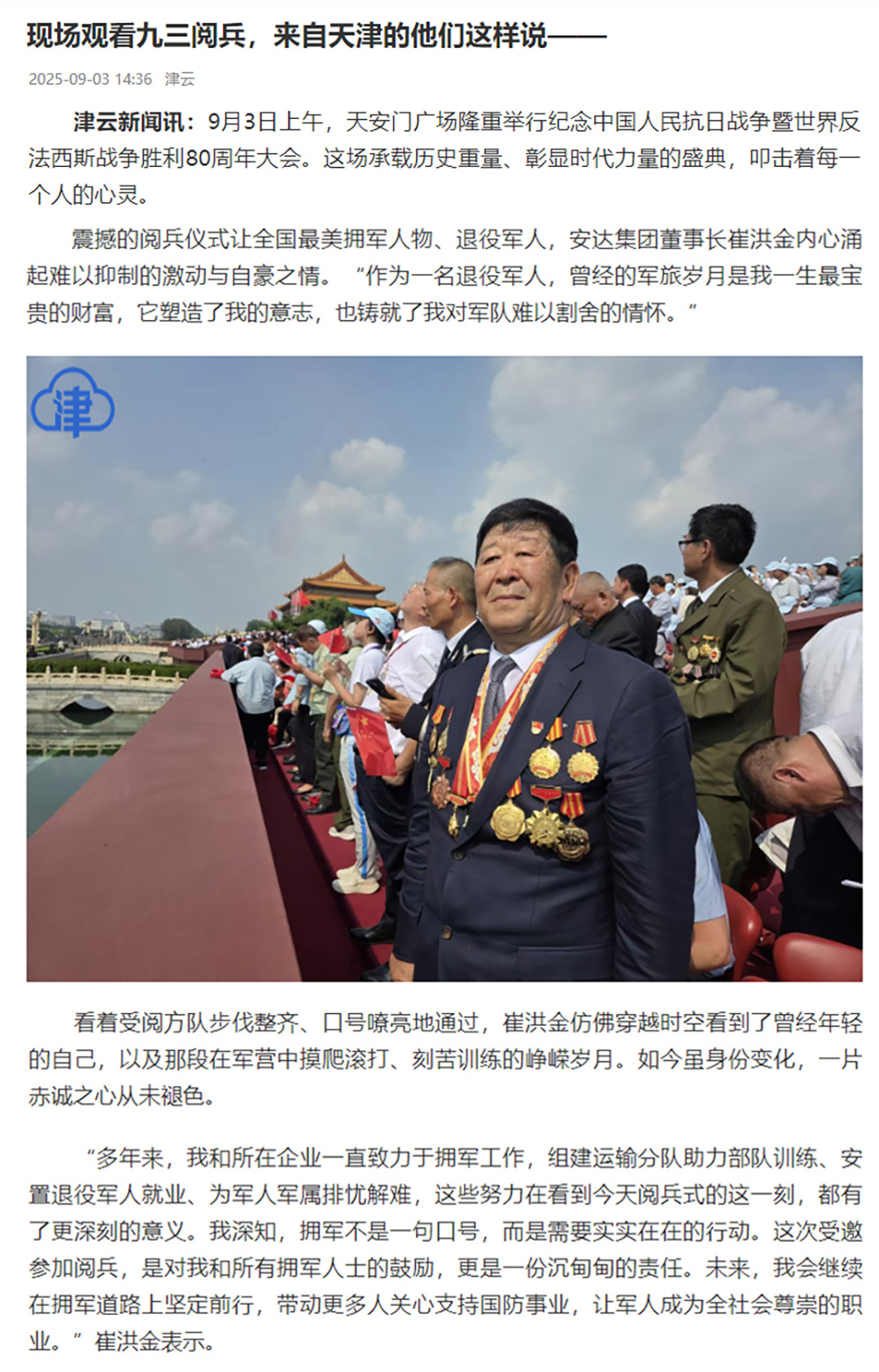崔洪金參加9.3閱兵 天津《今晚報》專題...