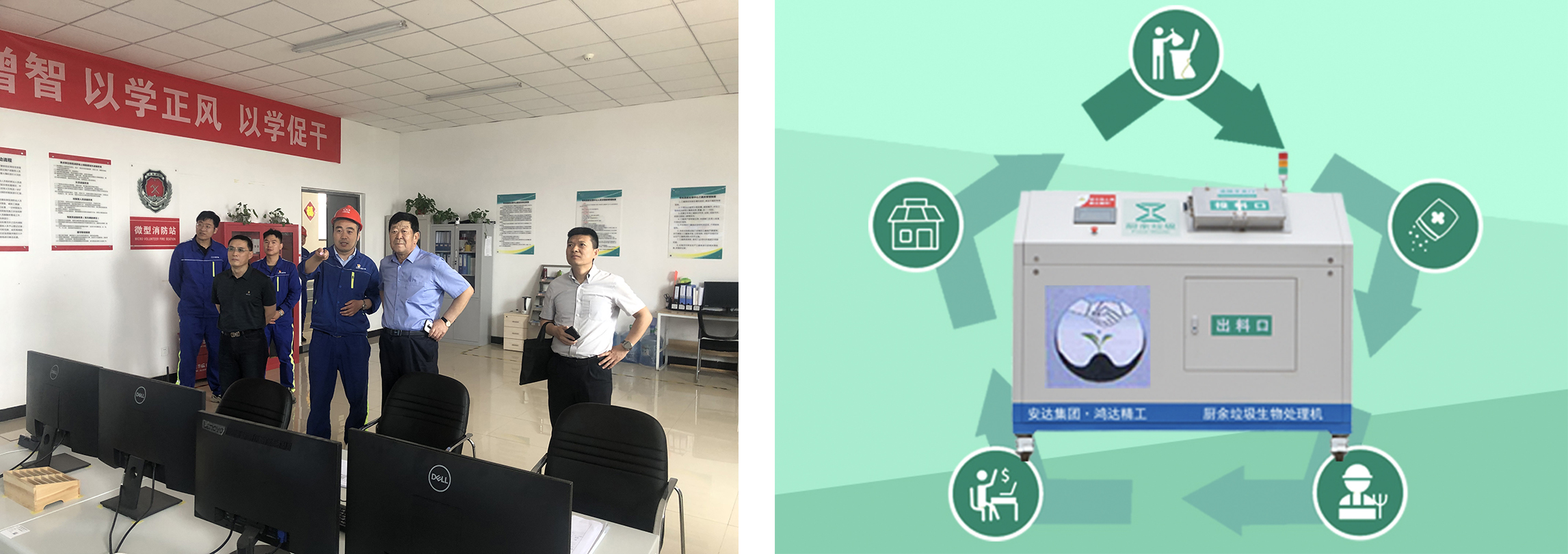 為進一步學習生活垃圾處理工藝,在參觀過程中,崔洪金董事長特意帶領助理王俊鵬、分公司鴻達精工機械有限公司副總經理莊儒國共同到該基地餐廚垃圾處理中心參觀學習。作為專業廚余垃圾資源化就地處理設備生產企業,本次參觀也為“泔凈沃土”牌餐廚垃圾處理設備的升級提供了新的思路和成長。憑借先進的技術,完善的設計,以及良好的質量意識和持續創新的理念,相信鴻達精工公司對“泔凈沃土”牌餐廚垃圾處理設備的生產和銷售將會實現質的飛躍。