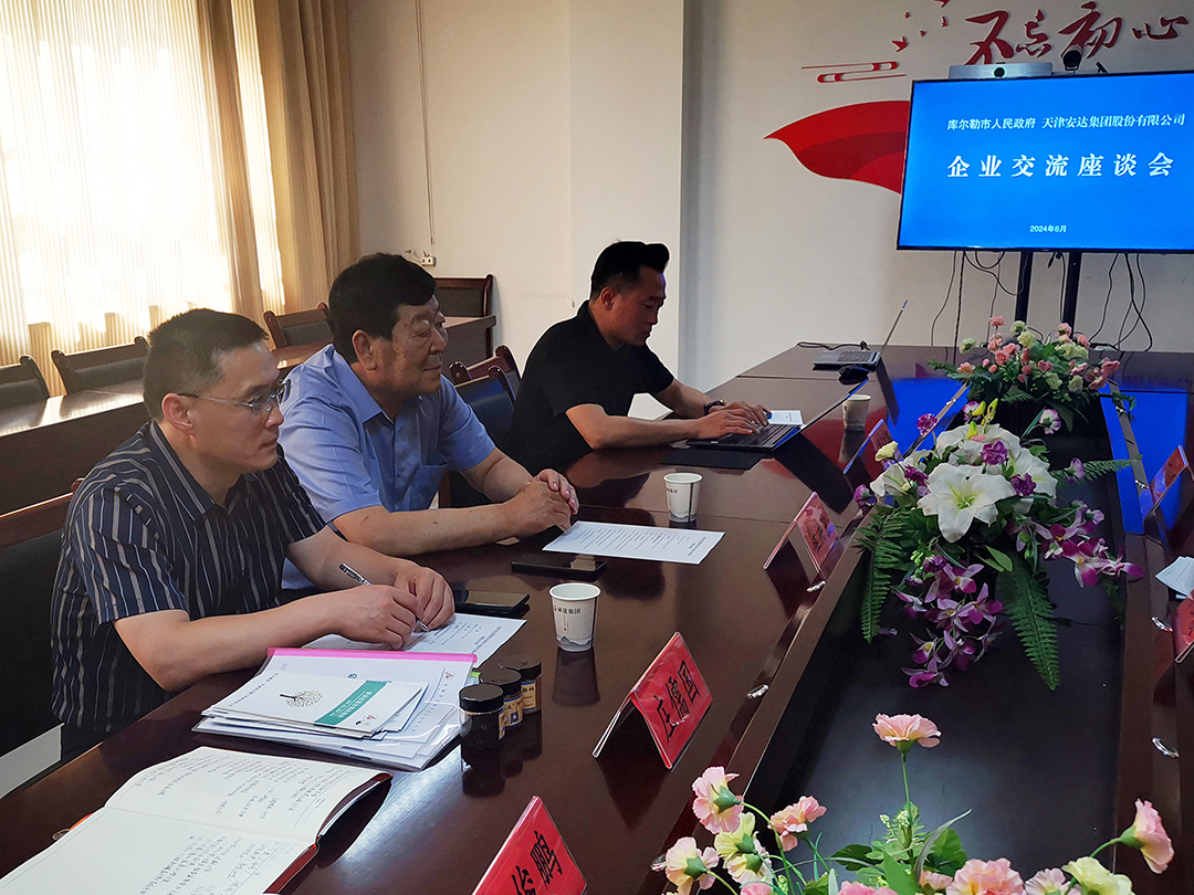 當(dāng)天下午,庫(kù)爾勒市政府副市長(zhǎng)楊松波、庫(kù)爾勒市商務(wù)和工業(yè)信息化局黨組書記、副局長(zhǎng)王偉,庫(kù)爾勒市退役軍人事務(wù)局、市容環(huán)衛(wèi)事務(wù)中心、商工局、上庫(kù)高新產(chǎn)業(yè)技術(shù)開發(fā)區(qū)分管領(lǐng)導(dǎo)與安達(dá)集團(tuán)黨委書記、董事長(zhǎng)崔洪金,安達(dá)集團(tuán)董事長(zhǎng)助理王俊鵬,安達(dá)集團(tuán)分公司天津鴻達(dá)精工機(jī)械有限公司經(jīng)理莊儒國(guó)以及財(cái)金城倉(cāng)(庫(kù)爾勒)環(huán)保科技有限公司副總經(jīng)理吳江濤共同參加座談會(huì)。