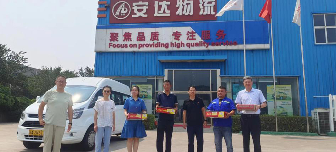 2024年7月11日上午,招商公路京津塘高速公司來安達物流開展“情暖征途 致敬貨運先鋒”活動,并帶來了防暑降溫物品,安達物流總經理鄭玉強、副總經理施鵬全程接待陪同。