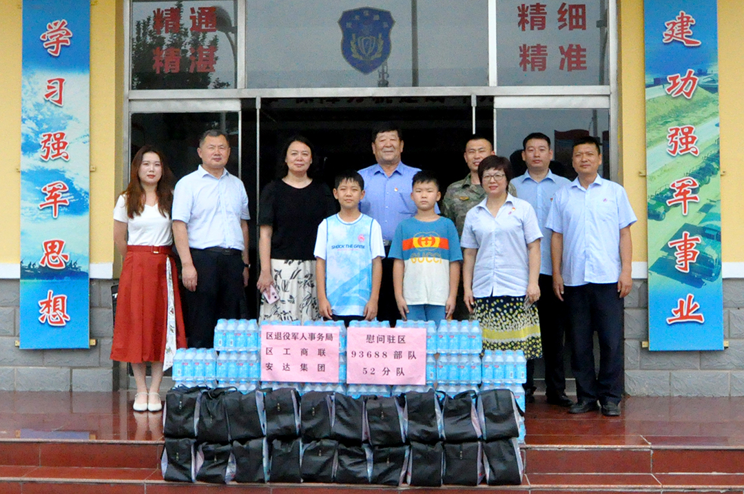 在 8 月 1 日這一特殊的日子里,安達集團黨委書記、董事長崔洪金,區工商聯一級調研員劉樹義以及區退役軍人事務局辦公室主任付穎穎等一行人,先后來到區 93688 部隊 52 分隊和 62 分隊,對部隊官兵進行走訪慰問。他們不僅為部隊官兵們帶來了夏日防暑慰問品,更傳遞出了對人民子弟兵的深切關懷與軍民一家親的深厚情誼。