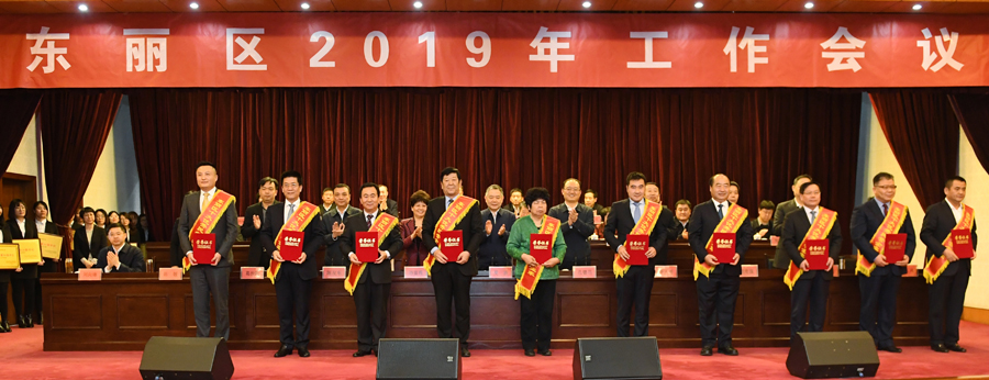 2月20日下午,我區召開2019年工作會議,認真貫徹習近平新時代中國特色社會主義思想和黨的十九大精神,深入落實習近平總書記在天津考察工作和京津冀協同發展座談會上的重要講話精神,按照市委十一屆五次全會和區委十一屆九次全會要求,對今年全區各項重點工作任務進行再動員、再部署,進一步統一思想、凝心聚力,頑強拼搏、扎實苦干,奮力開啟東麗綠色高質量發展新征程,推動美麗東麗建設再上新水平。區委書記夏新,區委副書記、區長孔德昌,區人大常委會主任孫富霞,區政協主席李大勇等區領導出席,安達集團黨委書記董事長崔洪金作為十大優秀民營企業家之一參會并上臺領獎。